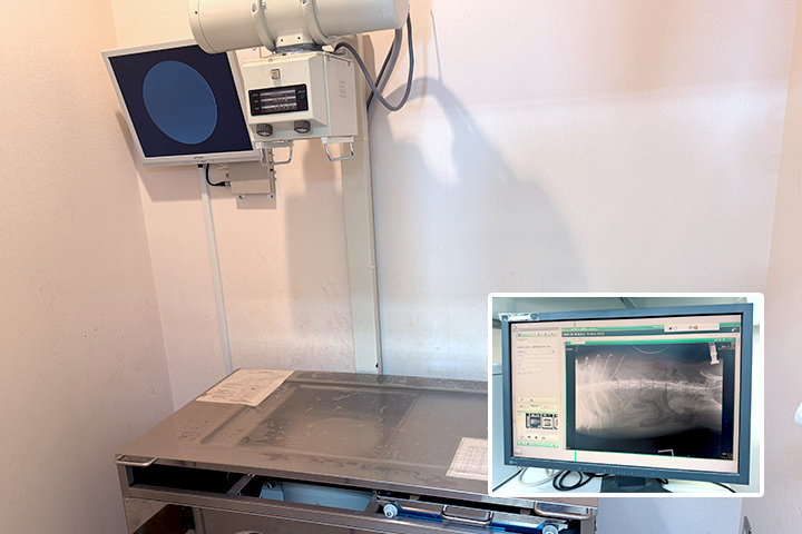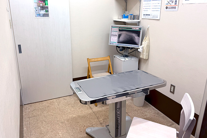 レントゲン検査、X線透視システム(TOSHIBA) 超音波検査を行います。